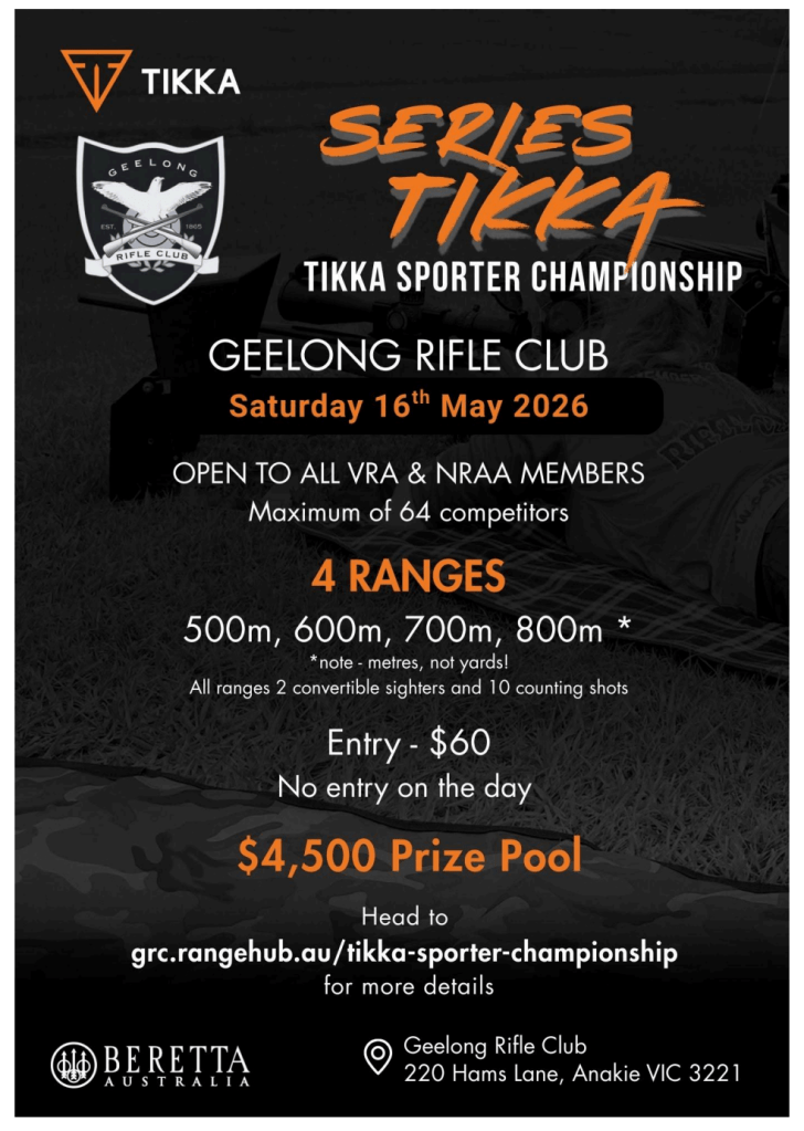 Catering by the Geelong Rifle Club throughout the day will include breakfast, morning tea, BBQ lunch and afternoon tea at club prices